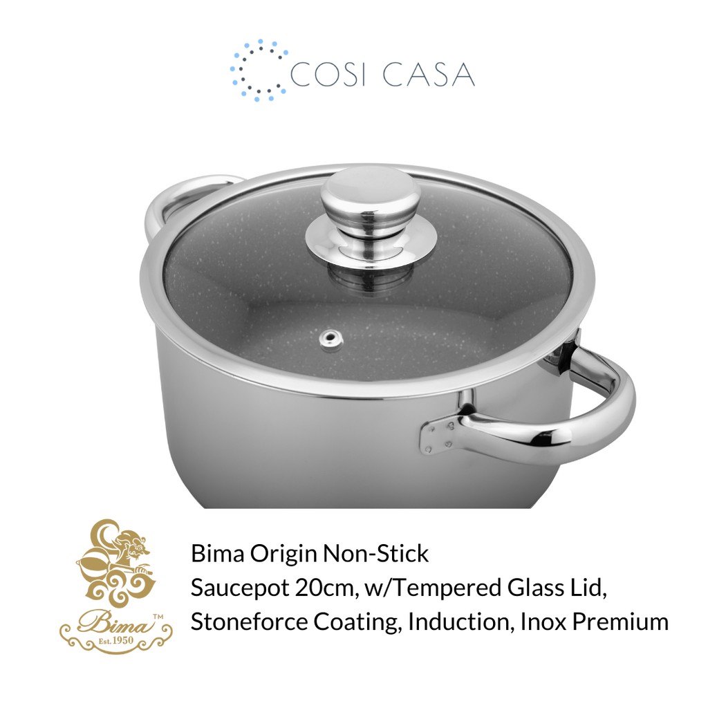 Distributor Perlengkapan di Kabupaten Pangandaran Bima Origin Non-stick Saucepot 20cm, W/tempered Glass Lid, Stoneforce Coating, Induction, Inox Premi dari Bima Kota Depok