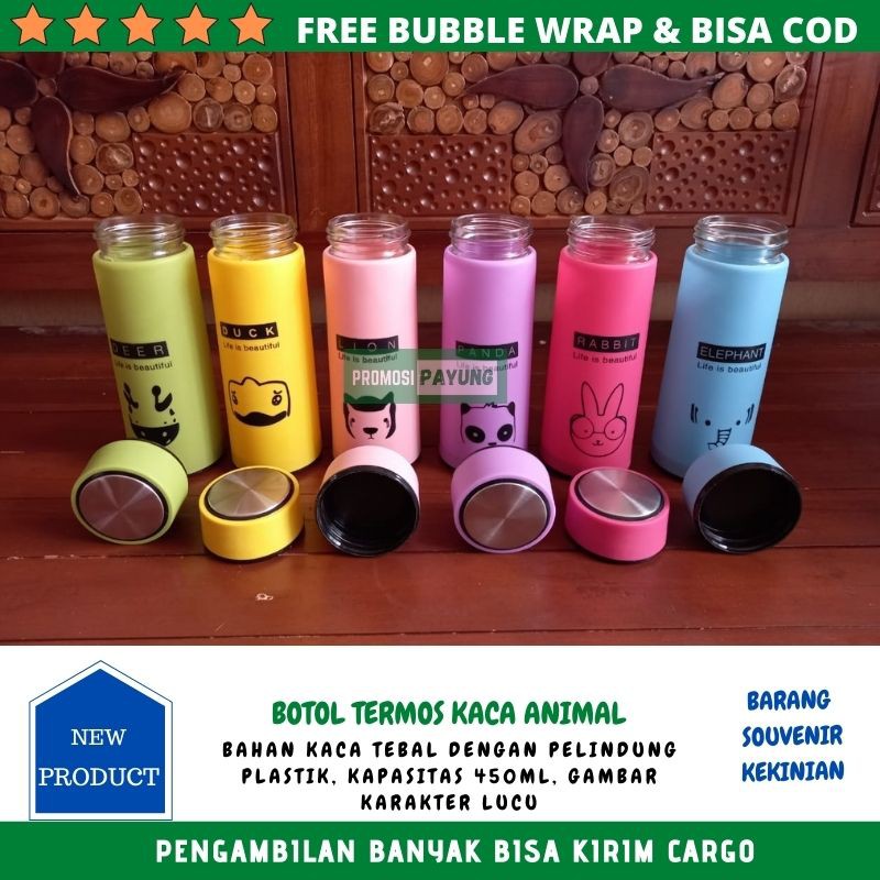 Name: Botol Termos Life Kaca Botol Minum Kaca Anak Pelindung Plastik Gambar Animal Hewan 450ml Warna Murah