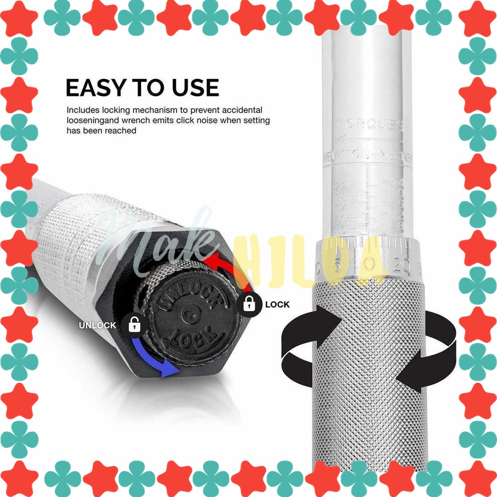 Q : Ready Kak ?A : Bisa langsung order ^^ selama produk ini tayang ;) atau kalau mau tanya lebih lengkap bisa silahkan chat kami ^^Q : GOSEND & GRAB Bisa Kak ?A : chat kami ya, tergantung lokasi ^^,PEGASI Kunci Pas Torque Wrench Two-way Spanner Tools - MXT-372BKunci pas torque wrench biasa digunakan pada ban kendaraan-kendaraan. Torque wrench mencegah Anda mengunci baut terlalu kencang ataupun terlalu longgar sehingga membuat baut Anda menjadi lebih awet.Features Torque Wrench Torque wrench ini memastikan baut pada ban mobil Anda terkunci dengan pas, tidak terlalu kencang dan tidak terlalu longgar. Different Size Torque wrench ini hadir dengan 3 jenis ukuran yaitu 1/4 inch, 3/8 inch dan 1/2 inch. (Beli sesuai varian). Item No. Square Drive Torque Range(N.m) Total Length(mm) Accuracy Weight(kg) 1/4 1/4" 5-25 280 4% 1.0 3/8 3/8" 20-110 295 4% 1.2 1/2 1/2" 28-210 465 4% 1.7 Clockwise Torque Only Torque wrench ini digunakan dengan memutarnya searah jarum jam. Package ContentsBarang-barang yang Anda dapat dalam kotak produk: 1 x PEGASI Kunci Pas Torque Wrench Two-way Spanner Tools - MXT-372B 1 x BoxSpesifikasi PEGASI Kunci Pas Torque Wrench Two-way Spanner Tools - MXT-372BWarnaSilverMaterialSteelDimensiapprox 27cm***HATI-HATI PENIPUAN MENGATASNAMAKAN MAK HILDA.***lebih baik chat/inbox/diskusi langsung dengan kami.MAK HILDAkenapa order di MAK HILDA?1. fast response, mohon antri kami akan jawab satu persatu2. after sales bisa di uji, silahkan komplain jika bermasalah3. garansi jika terjadi kesalahan dari pihak kami.Happy Shopping ;)Jangan lupa follow toko kami dengan klik """"""""ikuti"""""""" dan check PROMO lainnya di toko kami ^^Terima kasih.SKU : 3131/10672241835577671