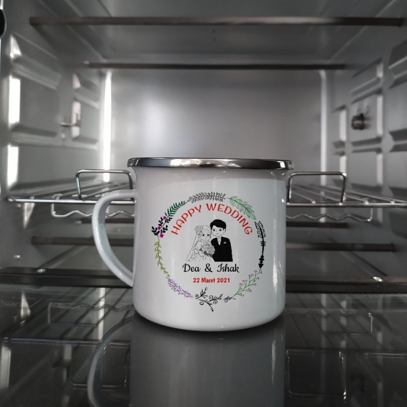 Mug dengan cetakan decal, sangat cocok buat souvenir pernikahan, ulang tahun, ngeteh, susu, atau untuk traveling, dll√Bahan : Enamel + List/Bibir Stainless√Ukuran : 8cm √Diamter : 9cm√Berat : 106gram√Kapasitas : 330ml√Hasil gambar tidak mudah luntur√Free kemasan duplex putih√Gambar, nama, tulisan bisa custom/sesuai keinginan√Gambar custom diutamakan siap cetak, tidak berupa photo dan beresolusi bagus agar hasil cetak maximal√Ukuran gambar maximal tinggi 5,5cm lebar 6cm√Untuk menambah keamanan pengiriman pesanan silahkan order buble wrap yg sudah di sediakan di chartPENTING! !!! Mug Enamel ini Hand Production jadi tidak akan mulus 100% titik kecil, coating kurang rata di permukaan atau di kuping merupakan hal wajar, tapi jgn khawatir kami selalu melakukan sortir untuk yg terbaik#cangkirenamel#cangkirenamelbandung#cangkirstainlessbandung#cangkirenamelmurah#mugenamel#mugenamelbandung#mugenamelmurah#mugstainless#hadiah#souvenir#ulangtahun#mugcu