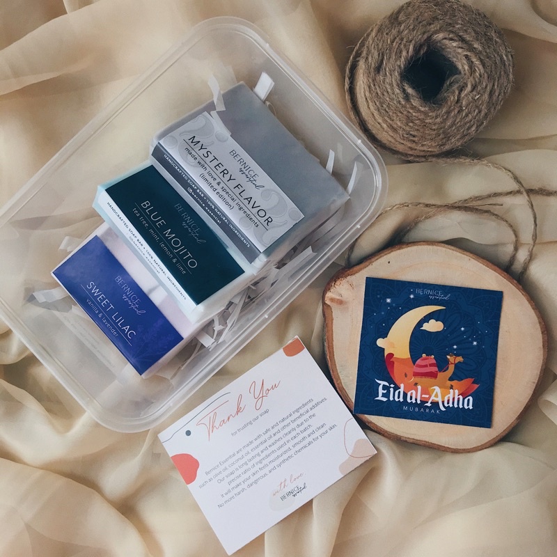 Bernice Essential WanderBox Hampers / Souvenir.3 Soap BarsIncluding box & card.Variant Random (bisa request tergantung stock).Bisa custom untuk pemesanan diatas 50 paket hampers/souvenir#handcraftedsoap #soapbar #handcraftedsoapbar #naturalsoapbar #naturalsoap #glycerine #glycerinesoap #ecofriendly #natural #sabunorganik #sabunnatural #sabunmandi #hamperslebaran #hampersramadan #ramadanhampers #hampers #hampersmurah #hadiahlebaran #paketlebaran #hantaranlebaran #hadiahidulfitri #hadiahramadan #ramadan #hamperslebaran