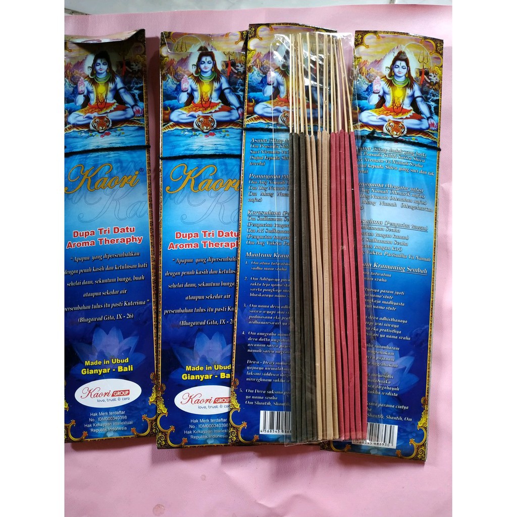 ask for stock Harga tertera harga perkotak Isi 10 bungkus ( dimana perbungkus Isi 15 stick ( total perkotak isi 150 stick) dupa kaori aroma therapy tridatu. sudah di pasupatiKhasiat dupa :Membersihkan energy negatif. Spritual, ketenangan.,aura positif. Mempercepat kontak bathin saat meditasi /sembhyang. Manfaat dupa : cocok untuk ibu ibu yg memiliki bayi yg sering menangis di malam hari karena gangguan mahluk halus. Cocok untuk menangkal ilmu hitam, roh jahat, Untuk tempat usaha / perkantoran. Cocok untuk di warung / tokocara pemakaian: 1. pemakaian dupa ini untuk pertama kali hidupkan 13 batang ( warna campur. asalkan jumlah nya 13 batang. tidak kurang tidak lebih2. untuk pekarangan biar tidak diganggu ilmu Hitam. tancapkan 7 batang dupa ini( warna campur) di tengah rumah. 3. untuk tempat usaha. warung. kantor dan toko. tancapkan 3batang dupa ini ( warna campur) dihalaman luar atau pelangkiran. 4.untuk bayi yg sering menangis di malam hari. tancap kan 3 batang dupa ini. di depan pintu utama rumah. 5.untuk melindungi orang sakit nonmedis. susah tidur. tancap kan 7 batang dupa ini menjelang tidur didepan pintu rumah. happy sho