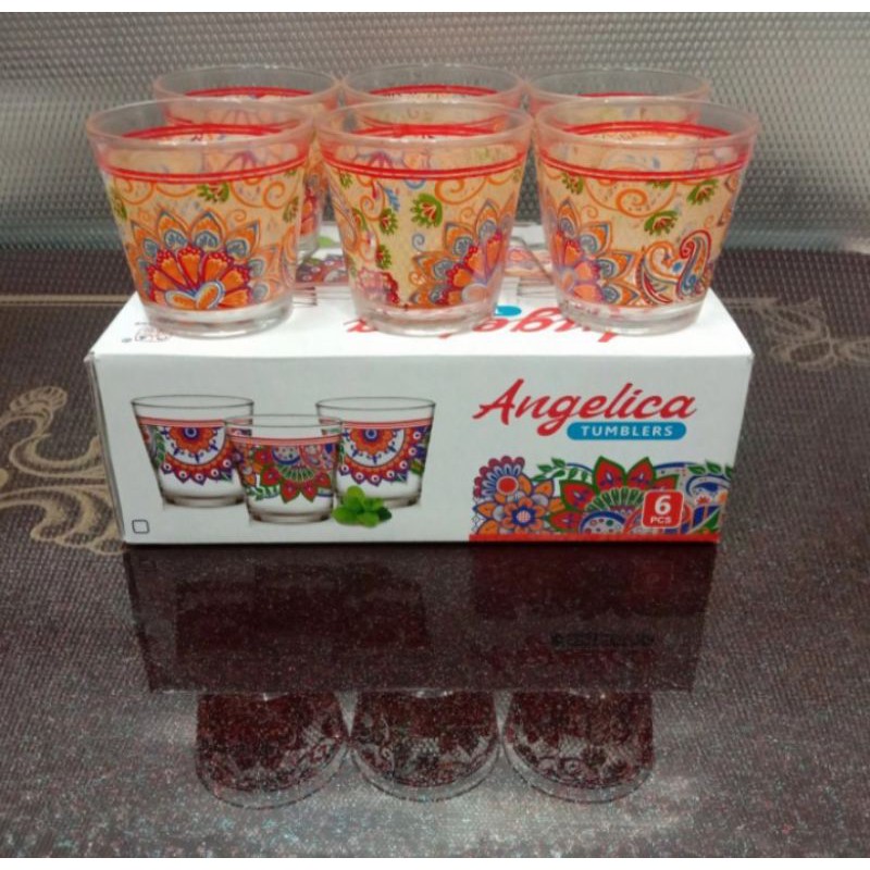 Gelas wine tumblers motif batik isi 5 pcs terbuat dari beling yang berkualitas dan tebal dengan dekorasi motif batik membuat kesan mewah diatas meja makan dan ruang tamu anda.Ukuran produkTinggi gelas + kaki = 10,5 cm Diameter gelas = 6,5 cmUkuran kemasan pxlxt ( cm )13,5x3