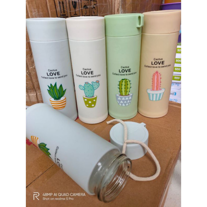 Botol Minum Kaca Motif Kaktus 400mlSpesifikasi : Tinggi : 19,5cmDiameter : 6,5cmKapaitas : 400mlBahan : Kaca Cover PVCKemasan : BOX* Tali gantungan memudahkan saat membawa botol ini* Tahan suhu panas dan dingin * Save money & planet earth (hemat uang dan selamatkan bumi dari sampah botol yang tidak digunakan* Design lucu dan unik dengan motif cactusBotol Minum Kaca Motif Kaktus 400mlSpesifikasi : Tinggi : 19,5cmDiameter : 6,5cmKapaitas : 400mlBahan : Kaca Cover PVCKemasan : BOX* Tali gantungan memudahkan saat membawa botol ini* Tahan suhu panas dan dingin * Save money & planet earth (hemat uang dan selamatkan bumi dari sampah botol yang tidak digunakan* Design lucu dan unik dengan motif c