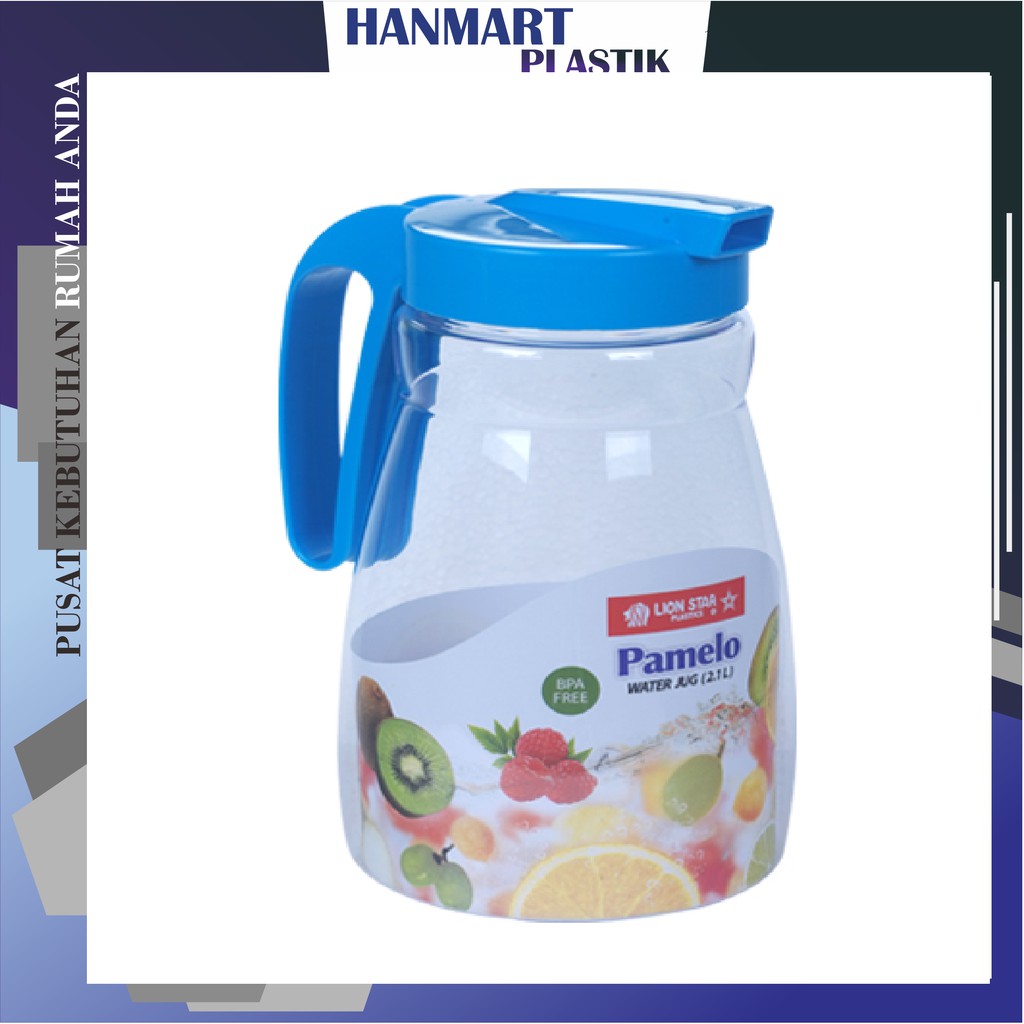 Lion Star K-36 Pamelo Water Jug 2.1 Ltr - Eskan PitcherKapasitas 2,1 LiterWarna : Biru, Merah, Hijau dan orangeBahan body eskan fiber, beningDiameter : 13,7 cmTinggi : 23 cm------------------------------------------------------------------------------------------------------Selamat Datang di Hanmart Plastik- Mohon bertanya/konfirmasi sebelum membeli untuk mengurangi potensi adanya kesalahan dalam membeli barang tanyakan juga stoknya.- Sampaikan Masalah dengan sopan untuk solusi terbaik sebelum menulis komplain.- Jika kedua warna pilihan stocknya kosong, akan kami kirimkan warna dgn stock yang ready.- Jika tidak mencantumkan warna pilihan cadangan,akan kami kirim warna random. MEMBELI=SETUJU!!!- Lebih baik Memesan BUBLLE WRAP agar barang sampai tujuan dengan selamat.Thank You and Happy Shoppi
