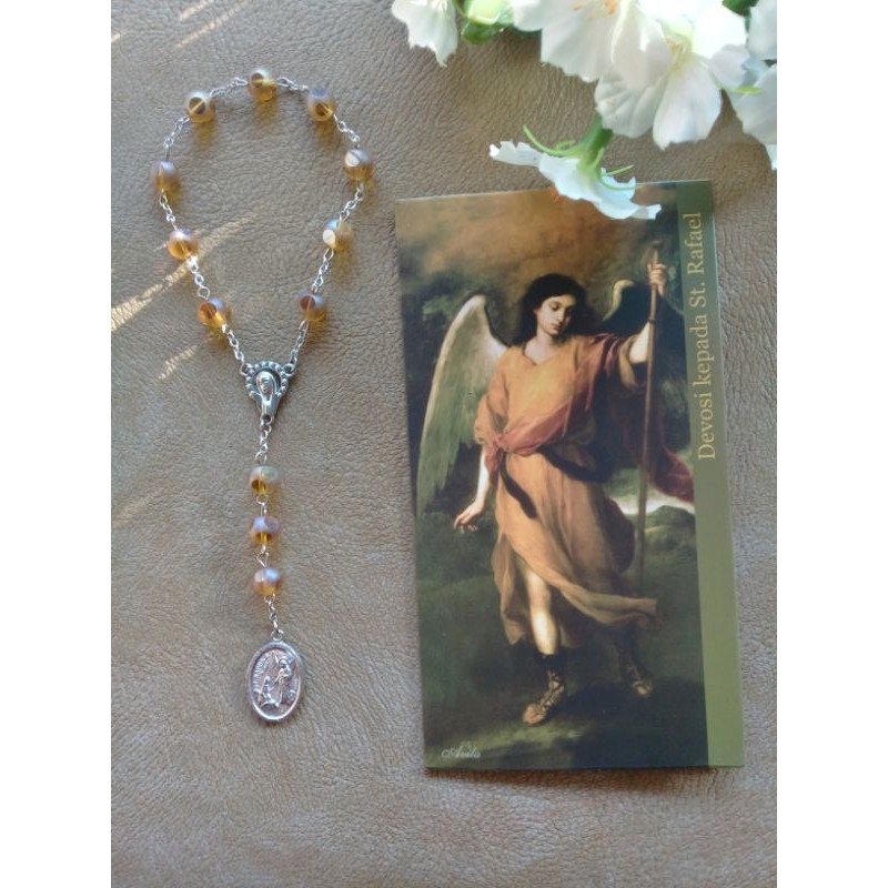 Bahan / Material :- Batu kristal bulat segi 8 uk.8mm- kawat & ring stainless- medali St. RafaelDilengkapi dg Lembaran