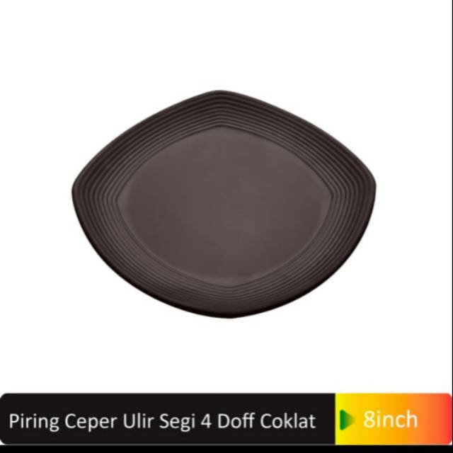 Piring Ceper Segi Empat Ulir 8 inch ini Cocok untuk dipergunakan pada restoran Jepang atau Keperluan di rumah untuk menyajikan makanan sushi,sate,siomay dll. Piring Makan Ceper Segi 4 unik ini dirancang dengan bentuk yang elegan dengan kualitas premium.Detail Produk :Merek: Glori melamineMaterial: Food Grade MelamineWarna: Hitam dan CoklatTampilan: DoffMade in IndonesiaSpesif