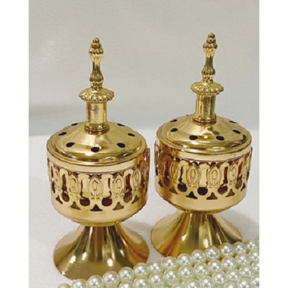 Name: Tempat Bakar Dupa Mabkharah Bulat Bahan Logam Warna Emas Arab 1 Set Isi 2